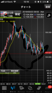 9:00過ぎから下げ始めているので、ロングエントリーはしたくないなぁ。